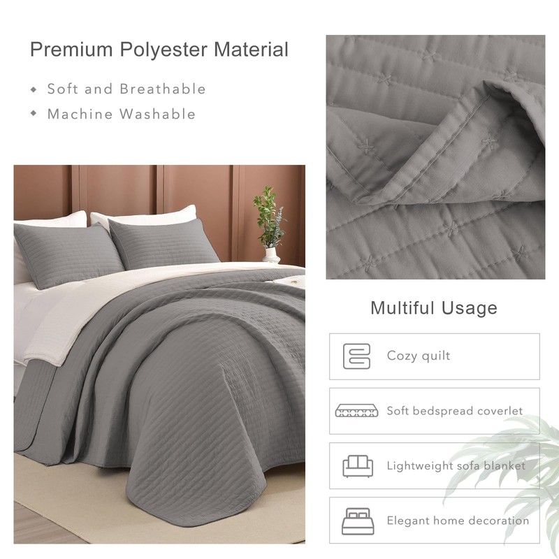 4-Grey/Gray bed quilt bedspread set includes 1 piece quilt/coverlet and 2 pieces matching pillowshams