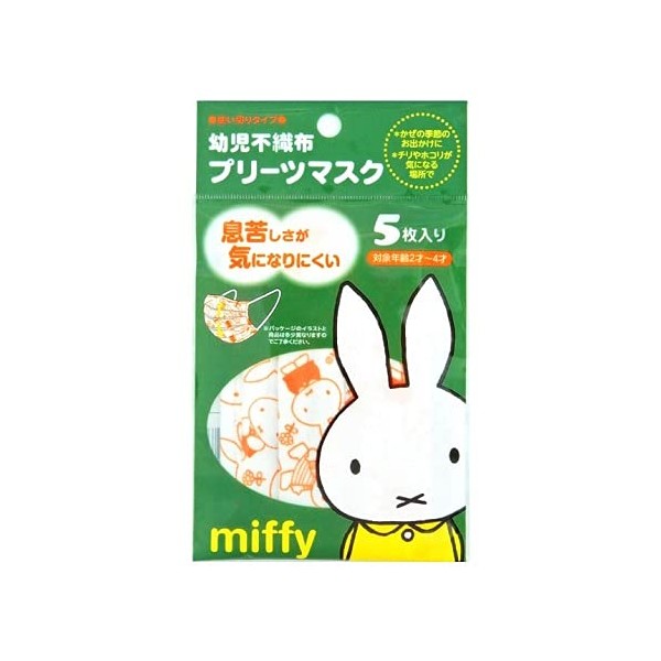 Masadashi Yokoi Non-woven Pleated Mask, Miffy, 5 Piece Set