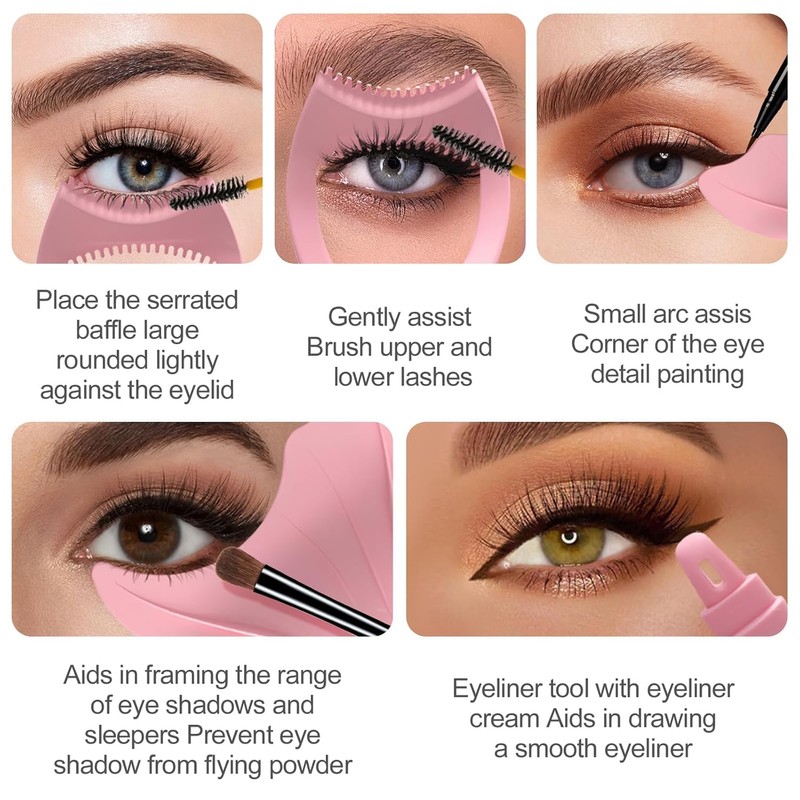 - 【Multi-function Eye Makeup Tool Set】To apply mascara, place the mascara guard at the bottom of the eye, and using the different angle curves of the mascara applicator, you can quickly apply the makeup to the upper or lower eyelashes, and finally use the eyelash comb to complete the perfect eyelashes. The eyeliner template allows you to quickly and easily apply eye and lip makeup.