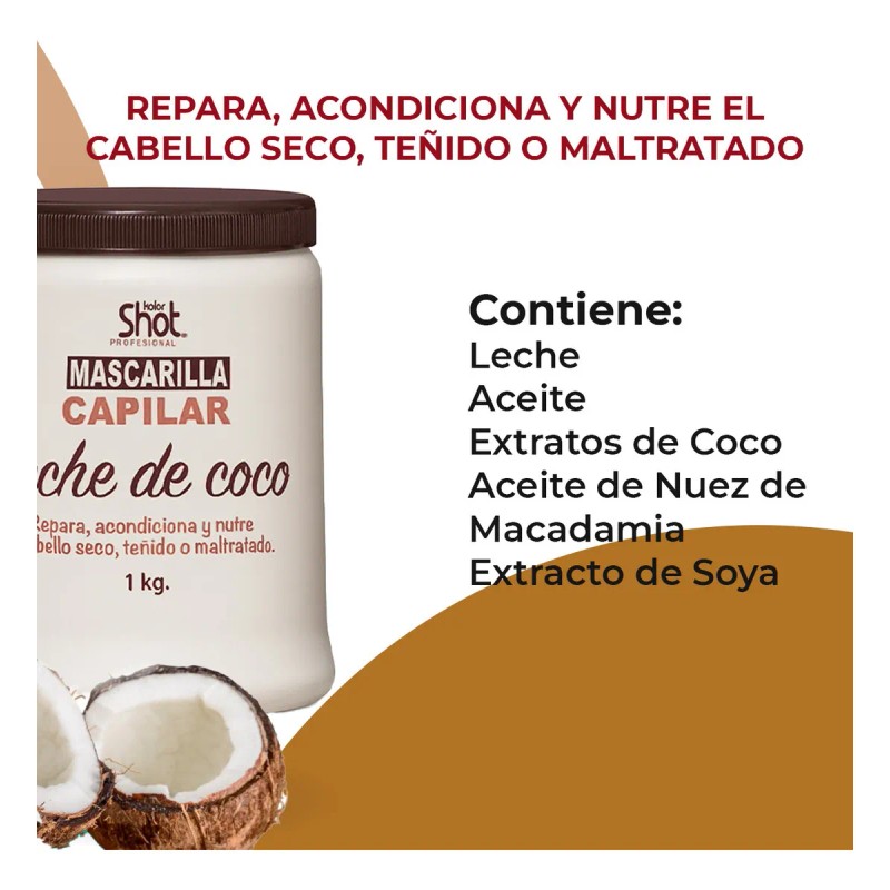 Mascarilla Capilar Coco Tratamiento Reparador Kolor Shot 1kg