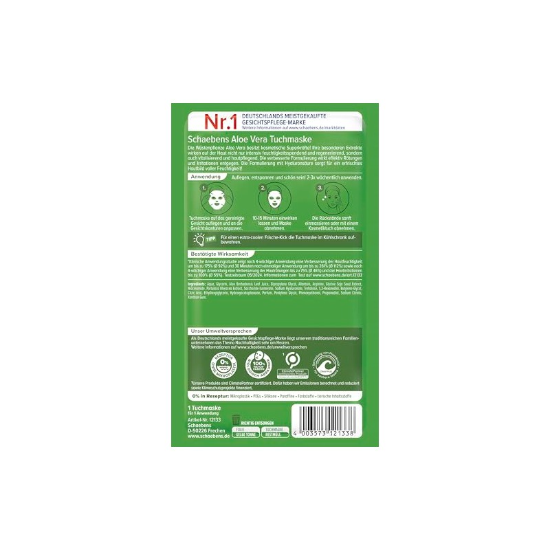 Mascarilla de Tela con Aloe Vera Schaebens – Hidratante y Calmante para Todo Tipo de Piel, Reduce Rojeces e Irritación, con Ácido Hialurónico y Glicerina