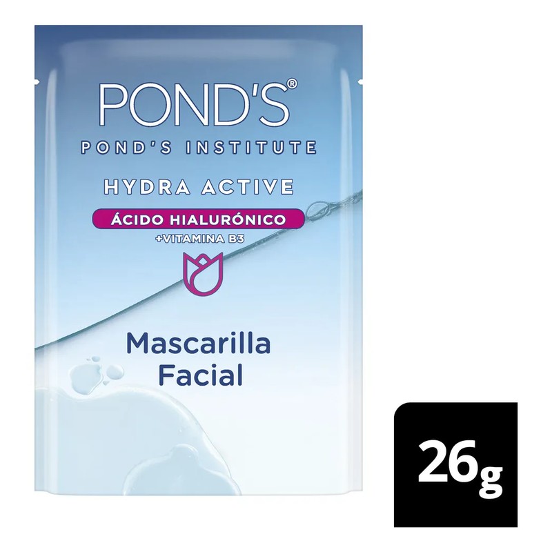 Mascarilla Facial POND'S | Con Ácido Hialurónico y Vitamina B3 | Hidratación y Luminosidad 26 g