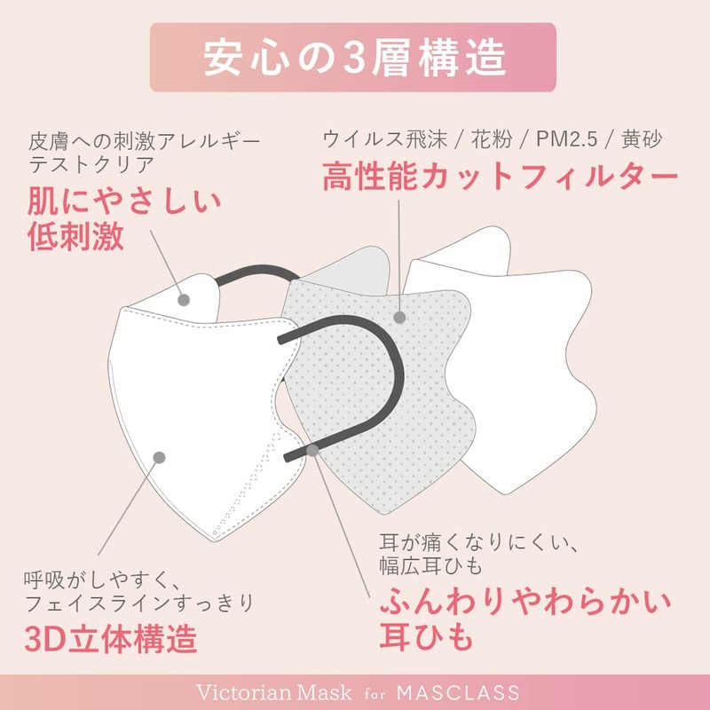 MASCLASS is a non-woven mask with a 3D shape that is designed to be beautiful and comfortable.