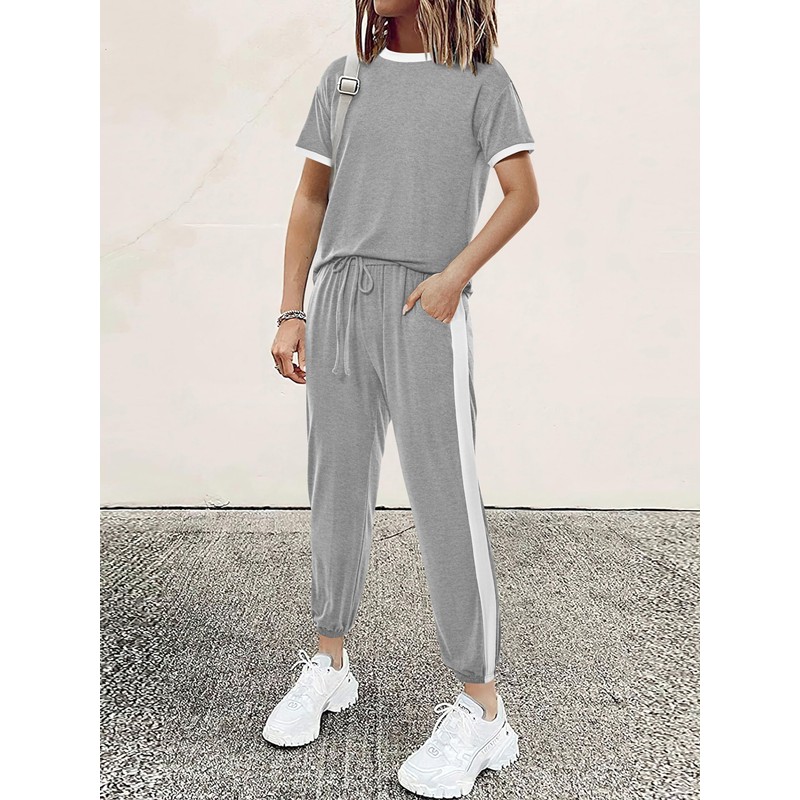 - Womens Loungewear Sets:The color block short sleeve tops have a loose fit, allowing for easy movement.The jogger style pants provide a relaxed fit and feature an elastic waistband for a comfortable and adjustable fit.You can wear it as matching pj set at home or workout sets for women when outdoor.