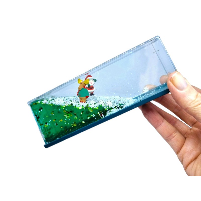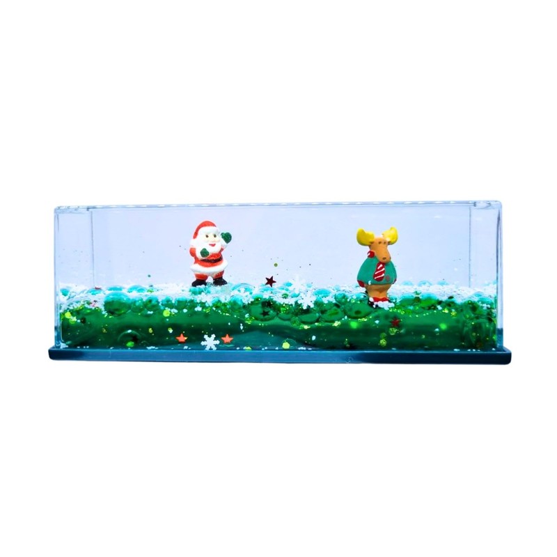 Mascoto Santa and Rudolph Christmas Decoration Models in Fluid Drift bottle, for Office and House, Liquid Paperweight Decoration, Stress Relief and Gifts