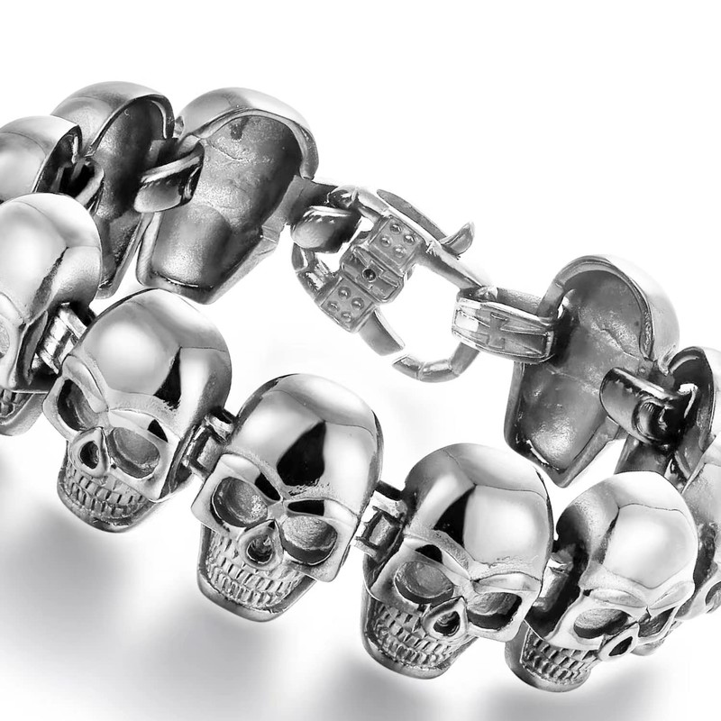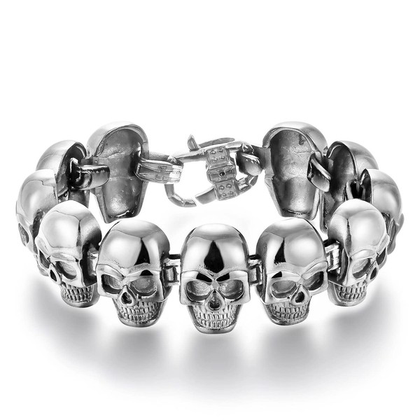 - Skull head charms link chain design to make a very cool handcrafted stainless steel bracelet for men, Chunky Masculine