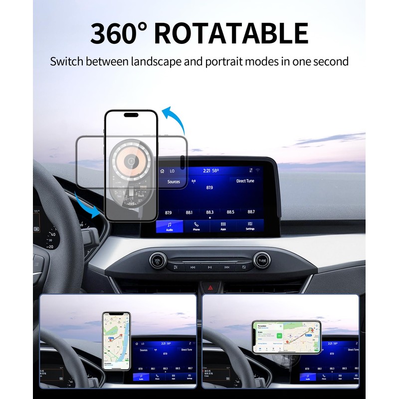 【Car Mount for MagSafe】Compatible with iPhone 16/15/14/13/12 Series Magsafe.(Attached metal ring, paste a metal ring to use other phones.)