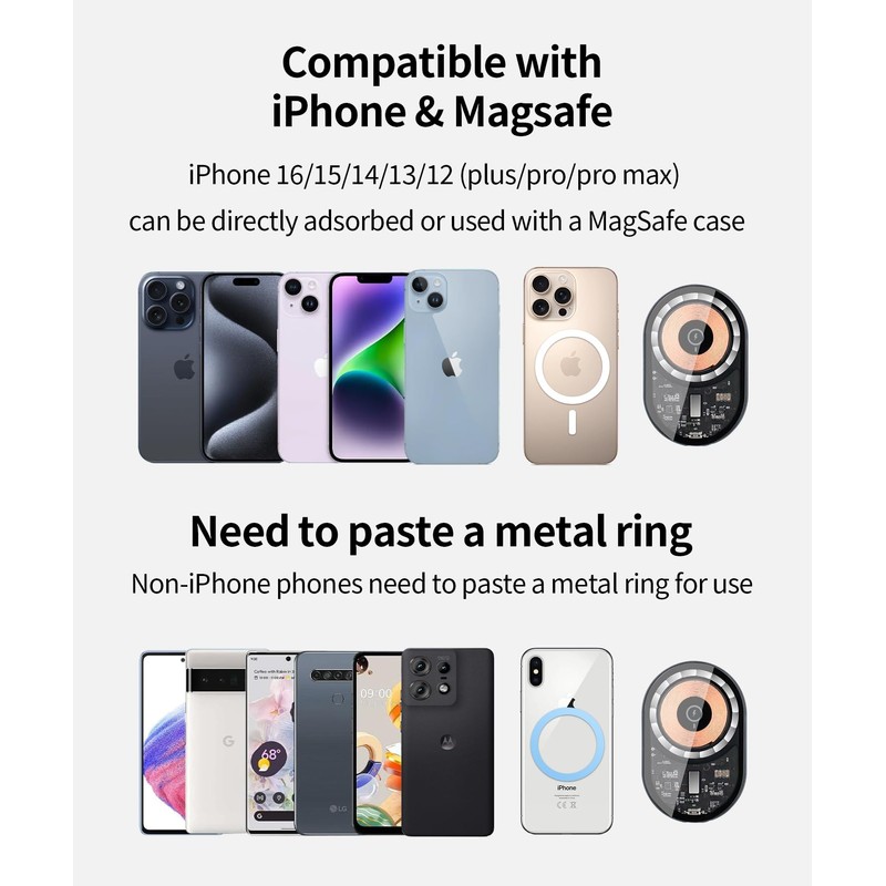 【Car Mount for MagSafe】Compatible with iPhone 16/15/14/13/12 Series Magsafe.(Attached metal ring, paste a metal ring to use other phones.