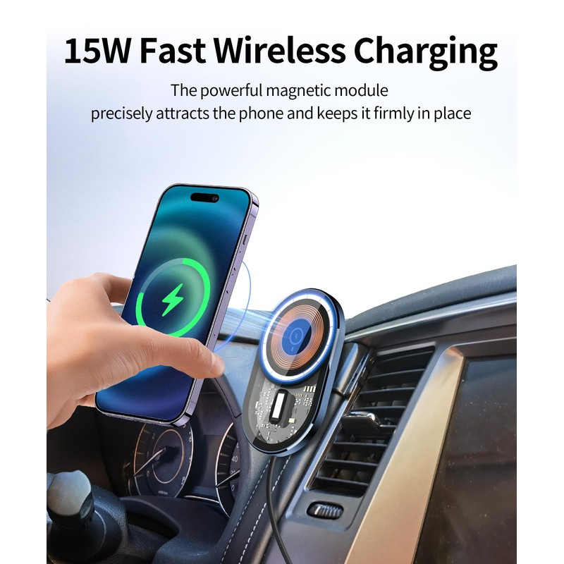 【Car Mount for MagSafe】Compatible with iPhone 16/15/14/13/12 Series Magsafe.(Attached metal ring, paste a metal ring to use other phones.