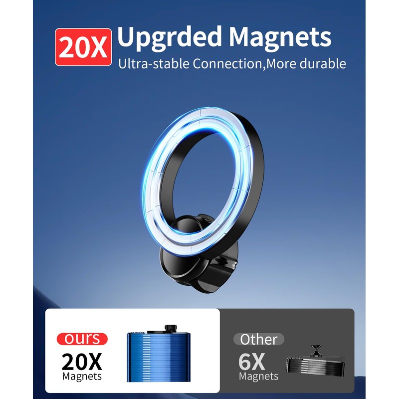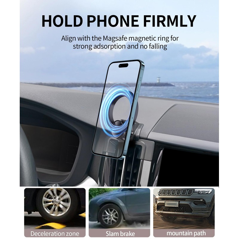 - Powerful Magnetic Car Mount Design for MagSafe:Car Mount for MagSafe are specially made of black aluminum alloy.Car Phone Holder comes with 20 wider N55 magnets that provide super-strong suction. The powerful magnetism keeps your phone stable,giving you a safe driving experience even on bumpy roads
