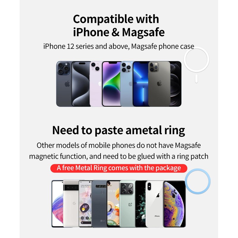 【Car Mount for MagSafe】Compatible with iPhone 16/15/14/13/12 Series Magsafe.(Attached metal ring, paste a metal ring to use other phones.)