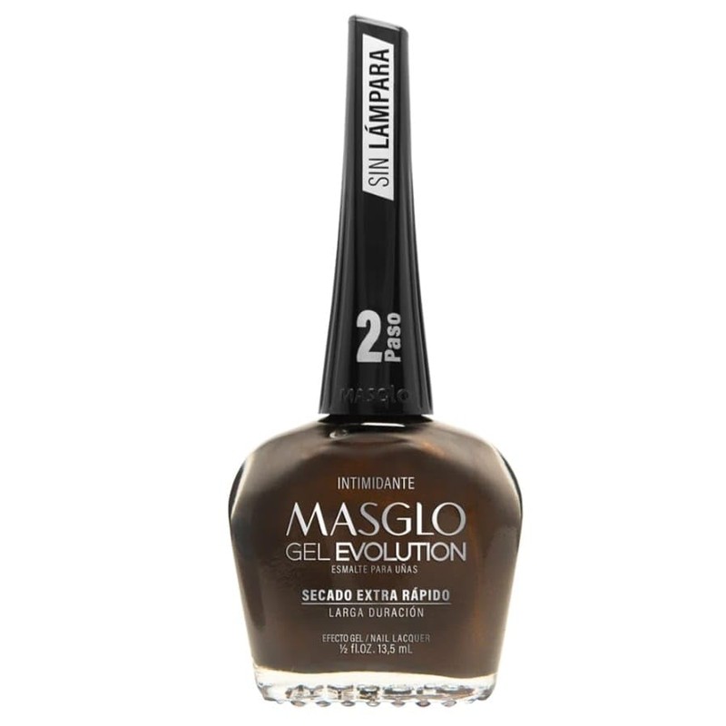 MASGLO GEL EVOLUTION Nail Polish Gel Effect, No UV/Led Lamp, Duration Up to 12 days, 3 PCs Base, Esmalte Color, Brillo (Intimidante, Base y Brillo)
