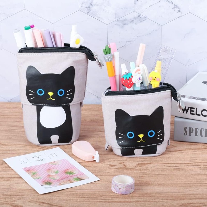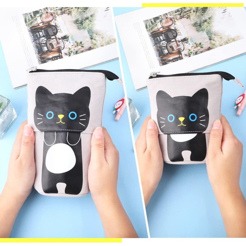 - ◊ 【Cute Pencil Pouch】- Look at these cute pencil pouches. The most adorable pen/pencil case you will receive as pictured. 4 colors cartoon stand up pen holder in pink, blue, gray and khaki, perfect for both girls and boys. If you love cats, choose this cute kitty bag!