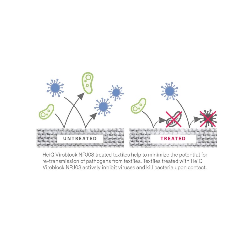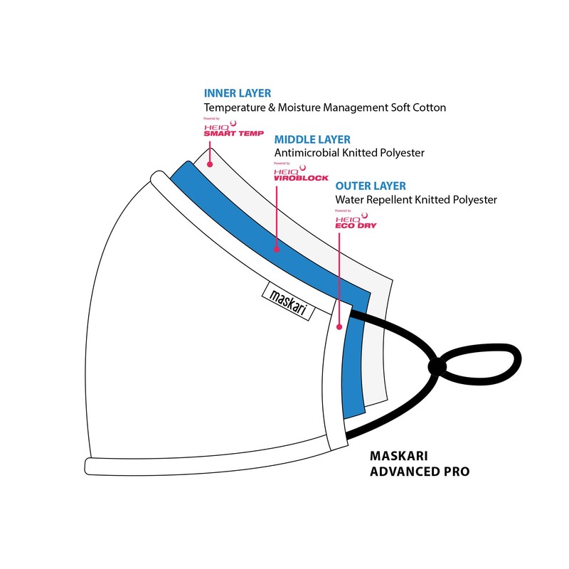 • The middle polyester layer has been treated with HeiQ Viroblock to provide strong antimicrobial protection.