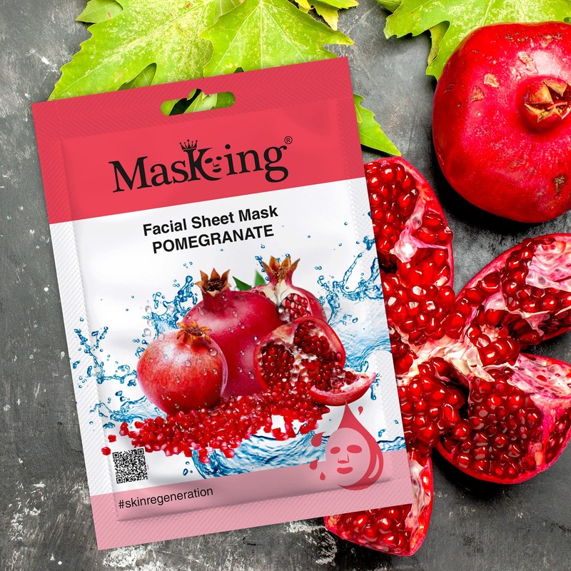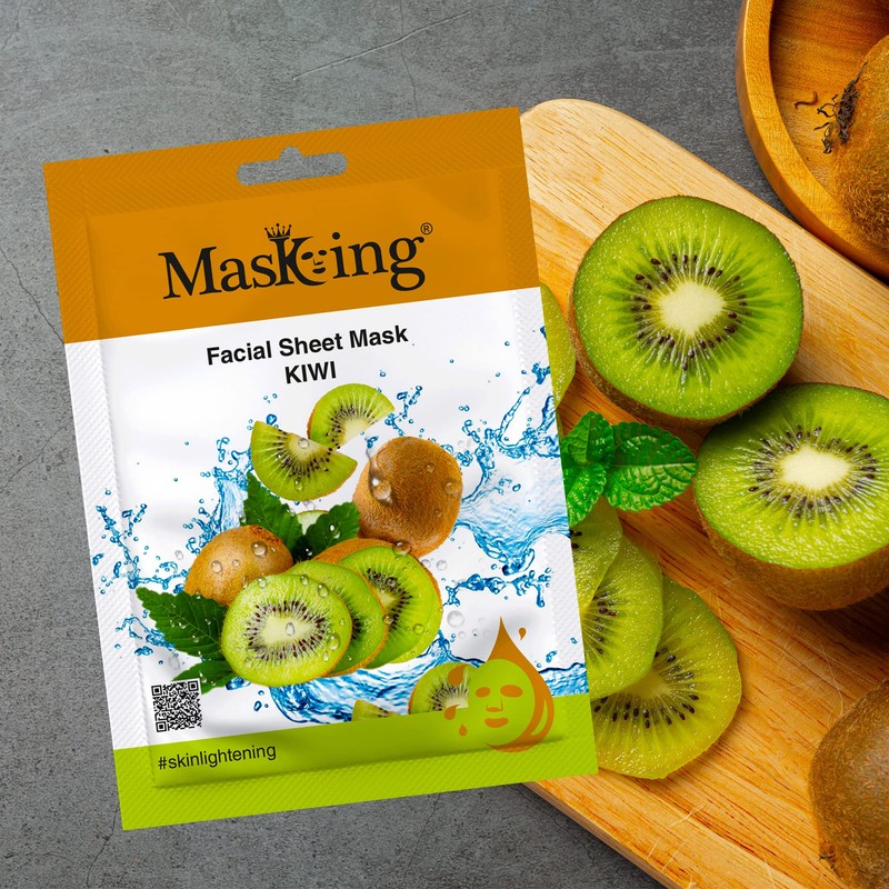 MasKing Beauty Facial Sheet Mask with Real Extract of Lemon, Pomegranate, Kiwi, Avocado & Rice for Skin Brightening, Regeneration, Lightening, Nourishing & Soothing for Women & Men, 100ml (Combo Of 5)