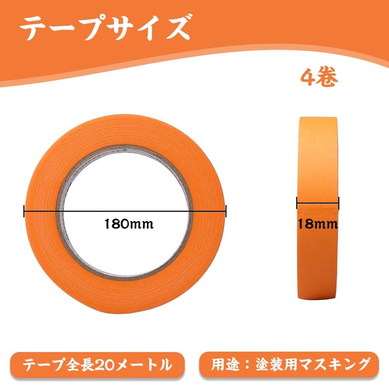 - Masking Tape Size: 0.7 in x 66.6 ft (18 mm x 20 m), 4 Rolls, Color: Yellow Masking tape used to paint vehicles with enhanced heat resistance and adhesion to withstand paint