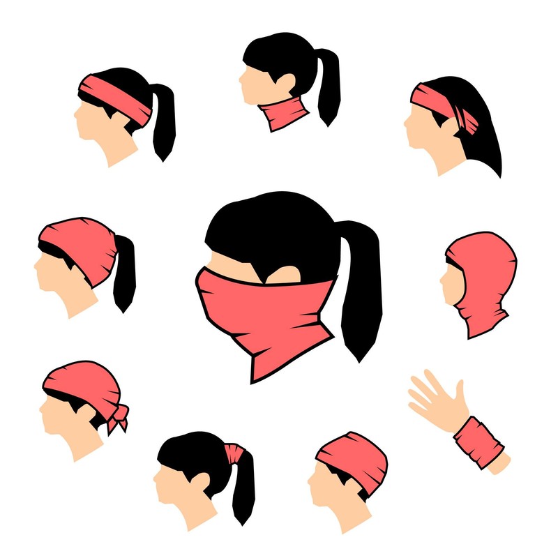 - The scarf can be worn as a scarf, headpiece or over mouth and nose.