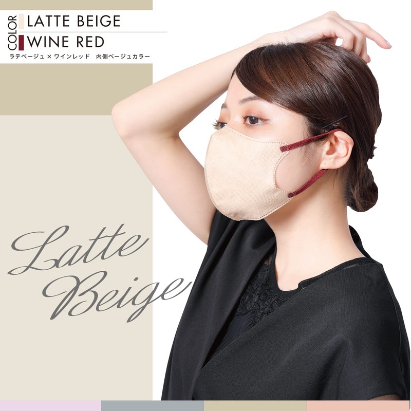 MASMIX ツートーンカラーマスク 立体タイプ 30枚入 ラテベージュ×ワインレッド