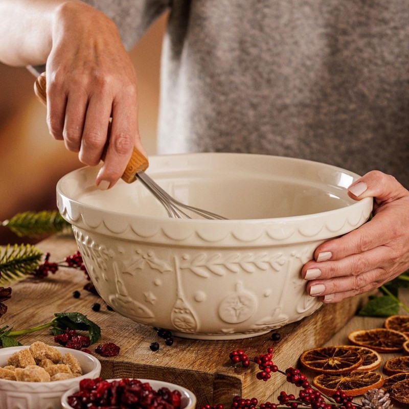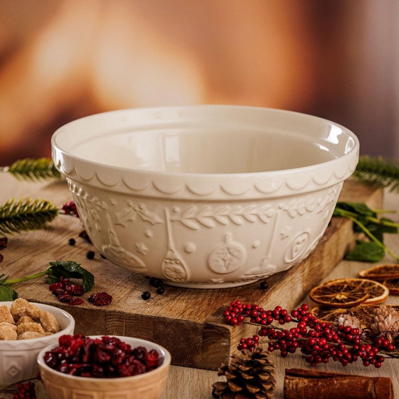Mason Cash Merry & Bright S16 (3.17 Qt) Embossed Mixing Bowl | Cream