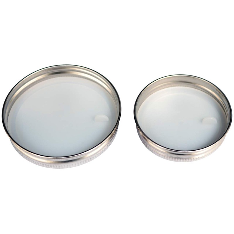 - 😍 GREAT VALUE, HIGHEST QUALITY MATERIALS: This five pack of rust proof lids and silicone lid liners for regular mouth Mason jars are made of high quality, thick, .3mm 18/8 304 grade stainless steel. Plastic and BPA-Free. Dishwasher Safe.