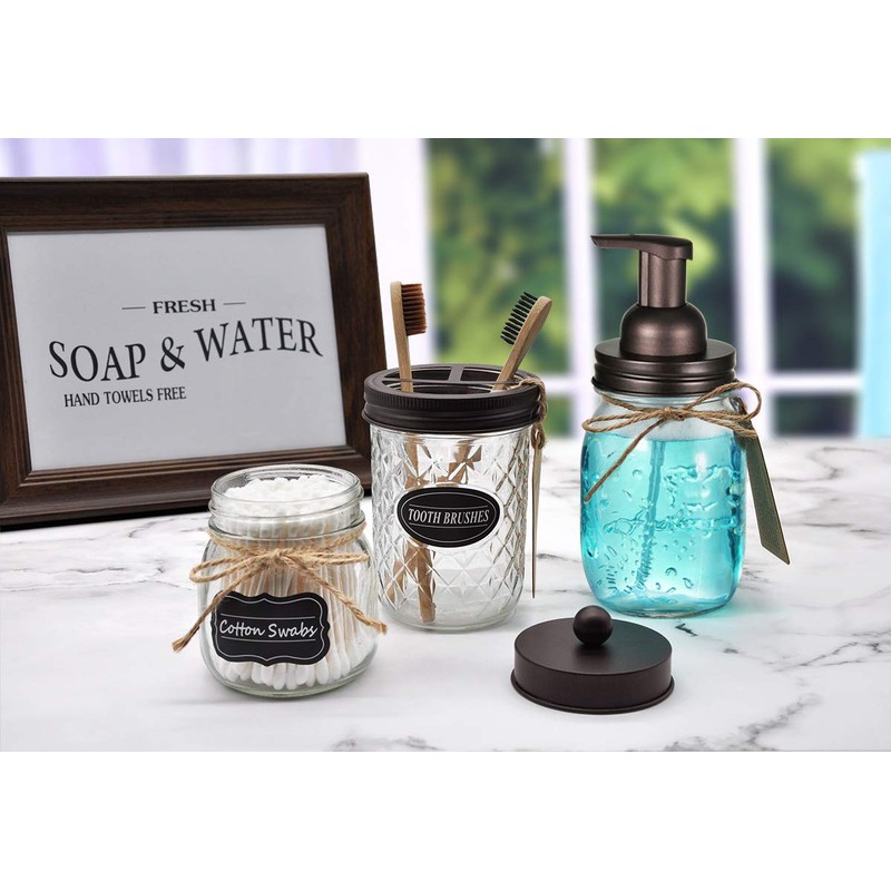 - ✅Used with any regular mouth mason jars.Place foaming dispensers on bathroom vanity countertops or kitchen sinks to keep soap always at your fingertips