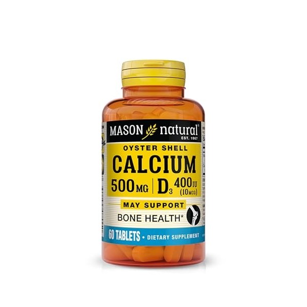 MASON NATURAL Calcium 500mg (Oyster Shell) with Vitamin D3-Strengthens Muscle Function, Supports Healthy Bones, and Overall Health, 60 Tablets