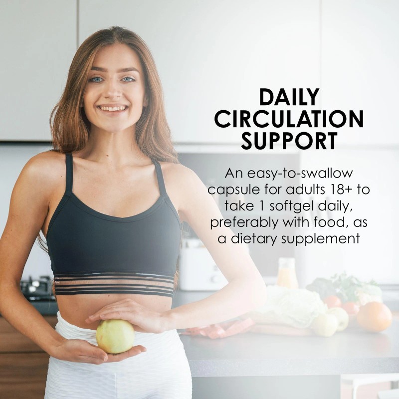 • DAILY CIRCULATION SUPPORT: An easy-to-swallow capsule for adults 18+ to take 1 softgel daily, preferably with food, as a dietary supplement