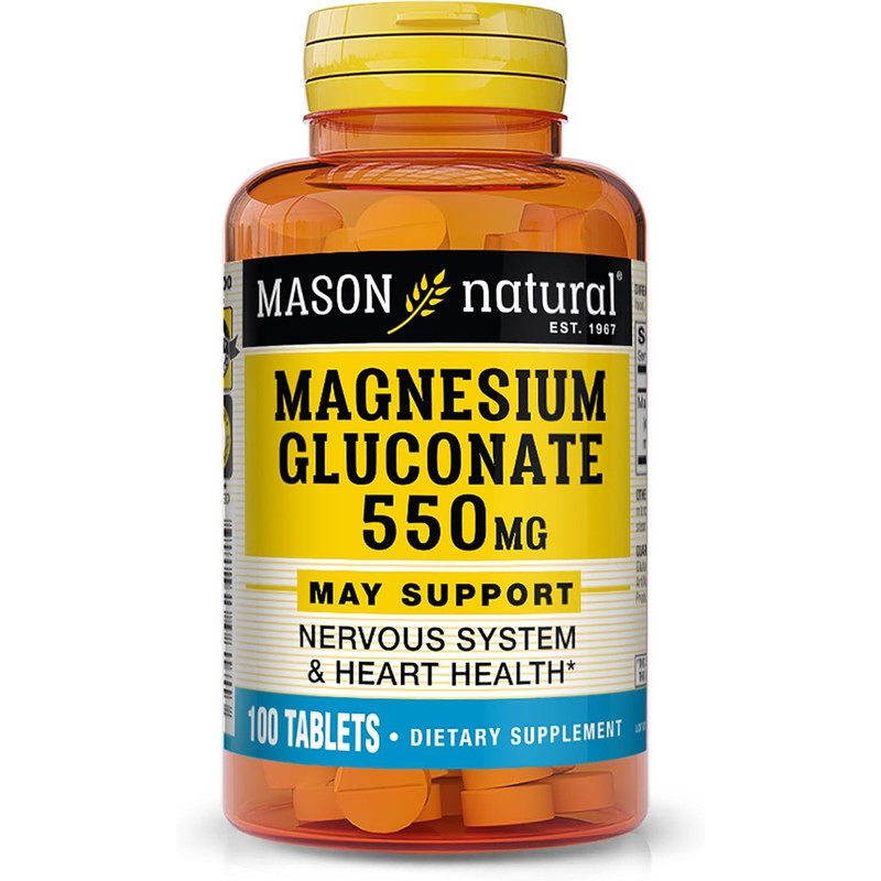 Mason Natural Magnesium Gluconate 550 mg, 100 Day Supply for Normal Healthy Heart and Nervous System Support