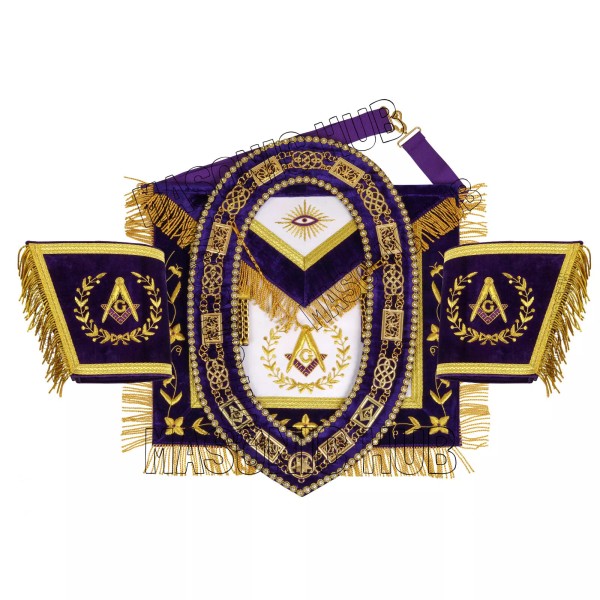 MASONIC GRAND LODGE MASTER MASON 100% LAMBSKIN APRON + CHAIN COLLAR + GAUNTLETS