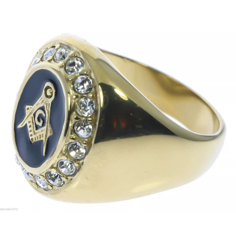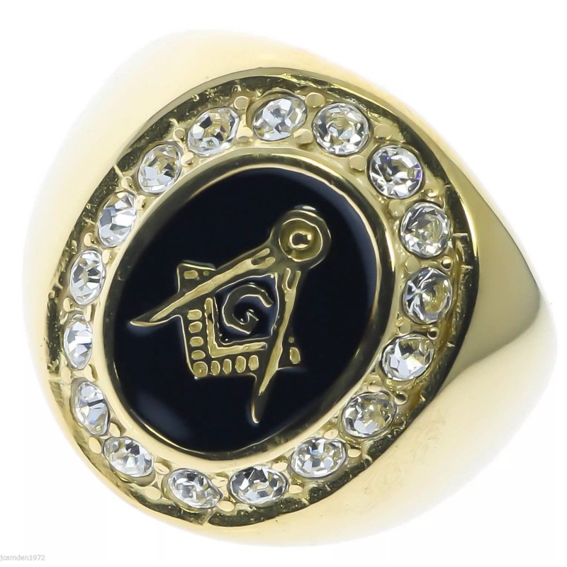 Masonic Mason Black Enamel men's 17 cz Ring 18K yellow gold overlay size 10 T29