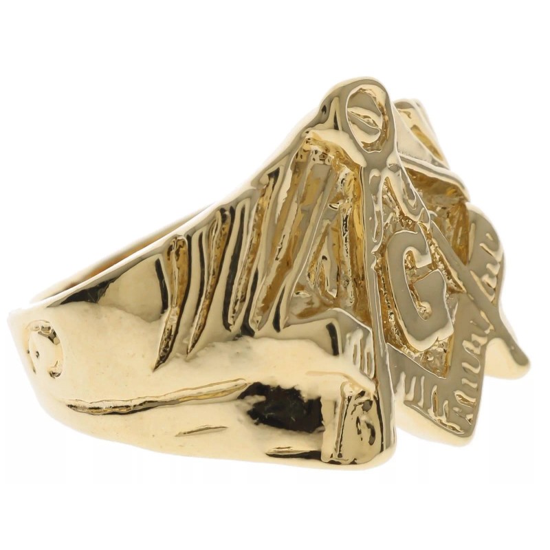 Masonic men's Rugged Pattern Ring 18k yellow gold overlay size 10