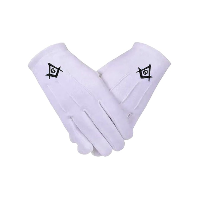 Masonic Square & Compass Black Embroidered Cotton Gloves - White One Size Pair