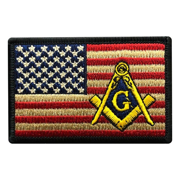 Masonic USA American Flag Tactical Patch [“Velcro Brand” Fastener -3.0 X 2.0 ...
