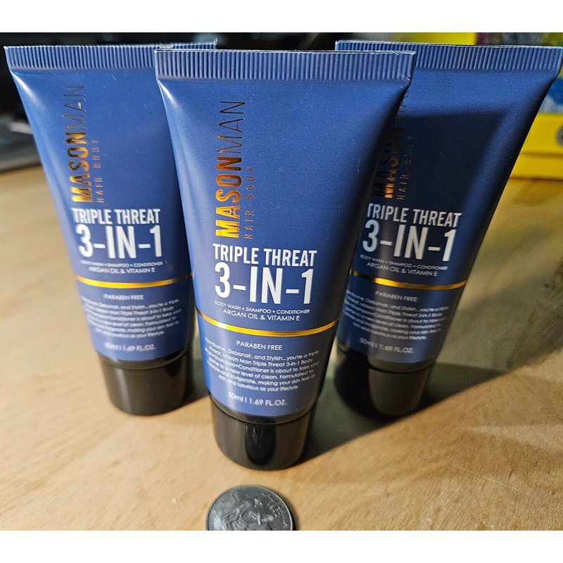 Masonman 3 X Masonman Mason Man Triple Threat Shampoo Body Wash Conditioner 1.69 Oz#RA-25