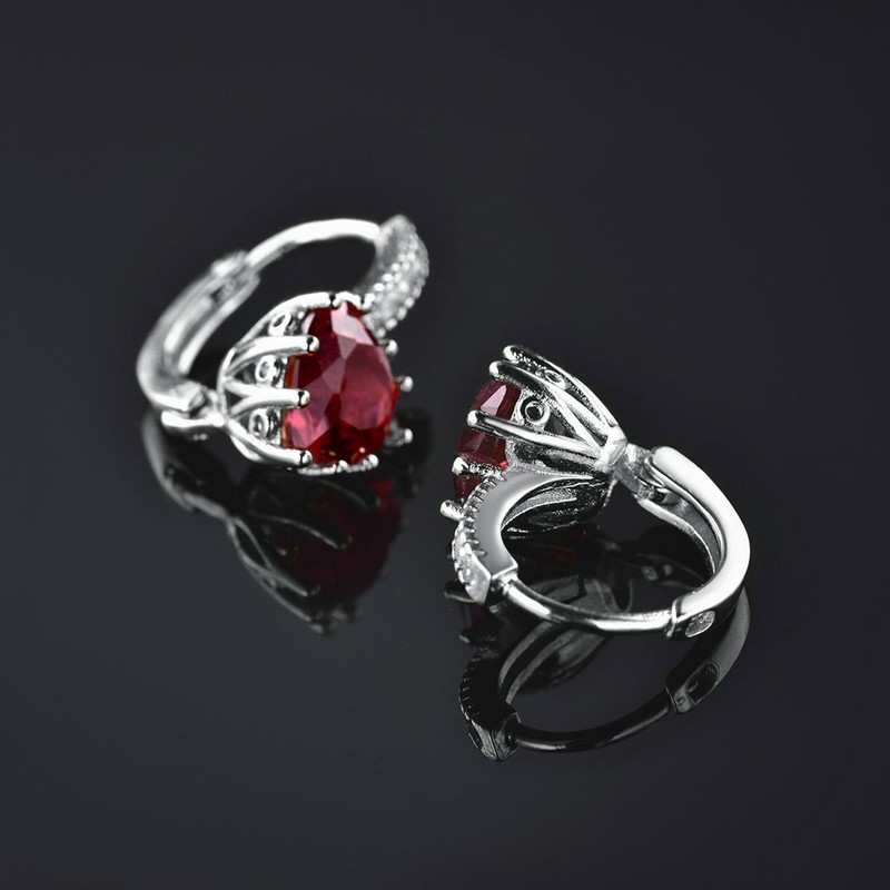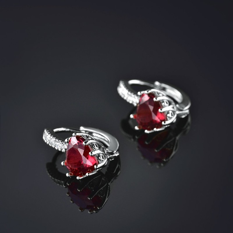 MASOP Fantaistic Sterling Silver Drop Huggie Hinged Hoop Earrings Leverback Heart Shape July Ruby Birthstone