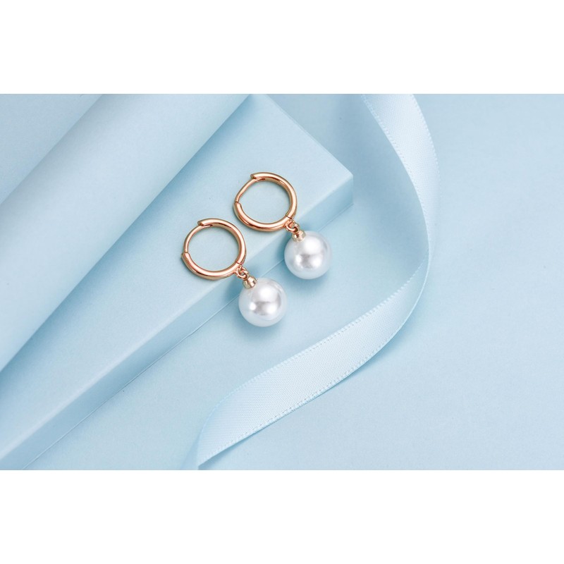 - Rose gold hoop earrings: rose gold-plated earrings with round pearl pendant.