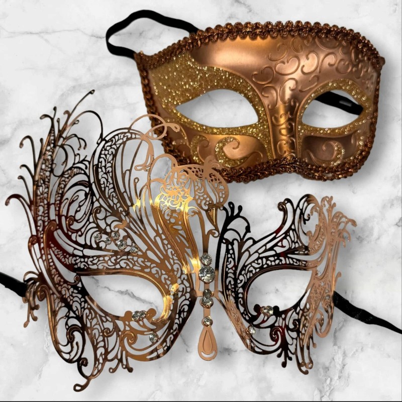 Masquerade Mask Couple Rose Gold Swan Lover 2X Masquerade Mask for Party Ball event