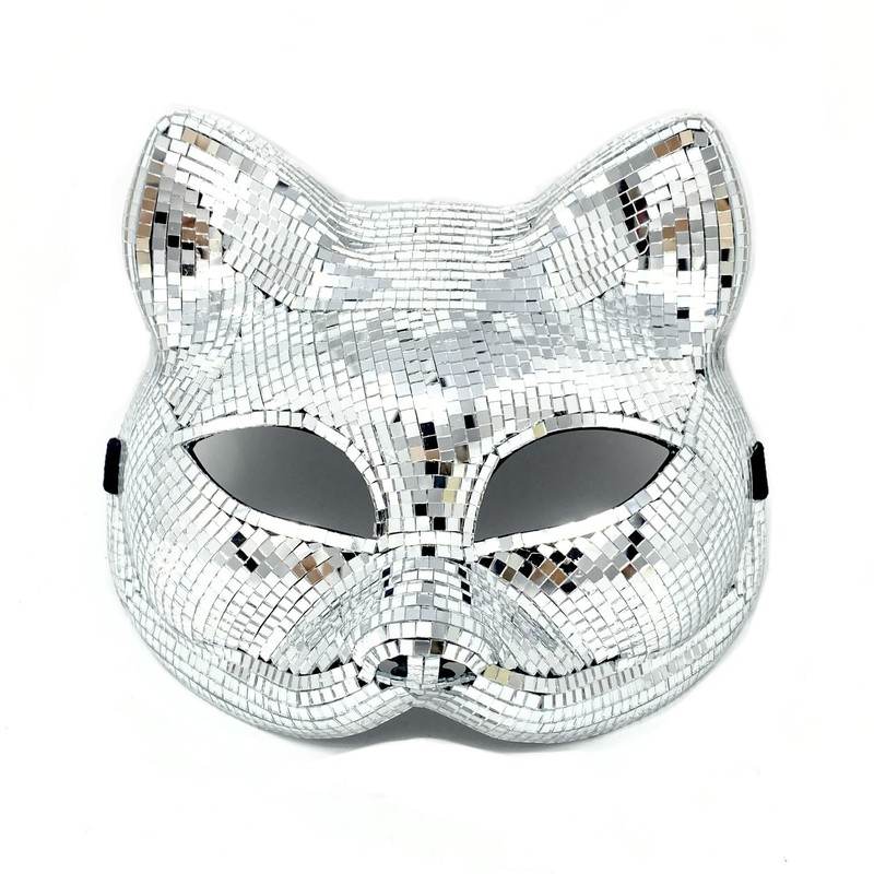 Masquerade Mask For Women, Cat Design, Venetian Style, Costume Party Mardi Gras Masks (Mirror Silver)