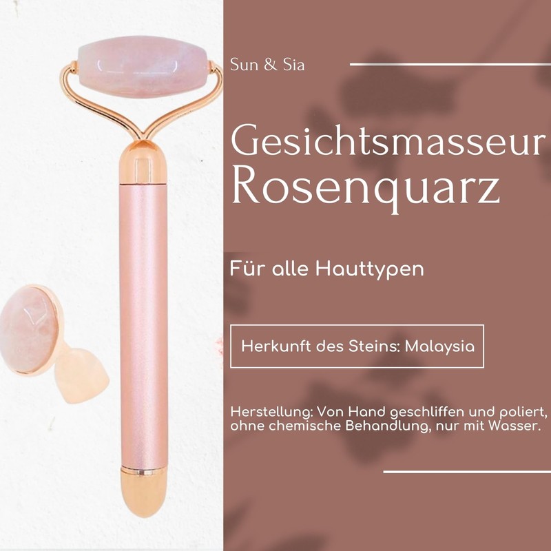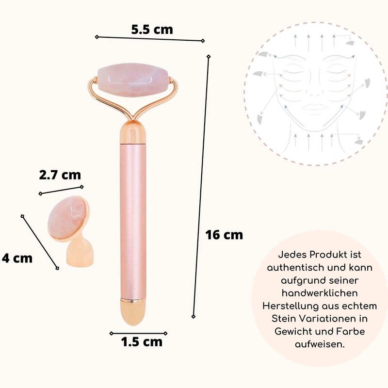 Masseur Face Roller Stone Quartz Electric Pink - Roller in 100% Natural Pink Quartz - Integrated Vibration System for More Efficiency - Anti-Ageing - Stimulates Blood Circulation - Sun & Sia