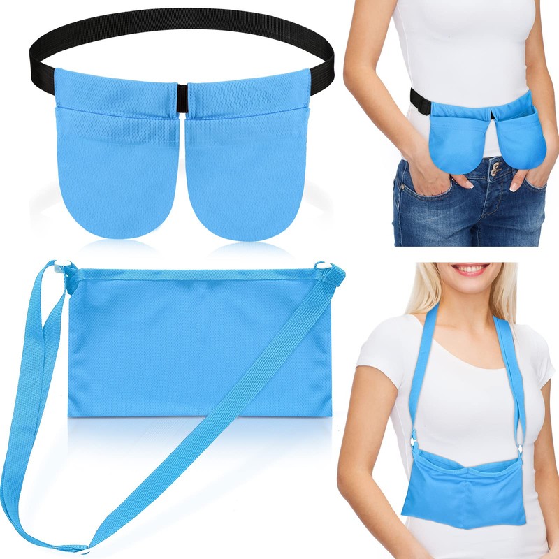 Mastectomía - Bolsa de drenaje con bolsa de ducha, soporte de drenaje ajustable para mastectomía, cinturón de drenaje de pecho para mastectomía, reducción de pecho, aumento, recuperación de apoyo, kit de cuidado del paciente (azul)