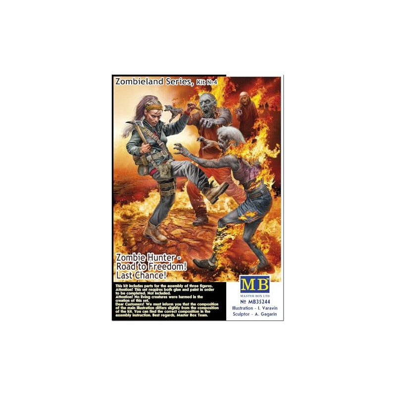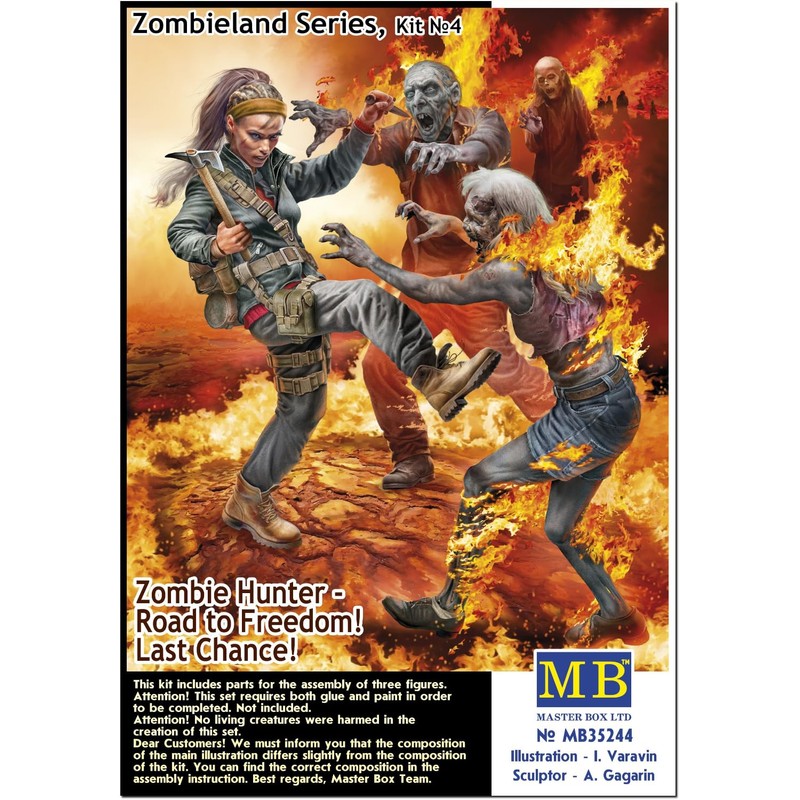 Master Box MB35244 1/35 Zombie Land Series Zombie Hunter, 1 Female + 2 Attacking Men and Women Zombies Plastic Model