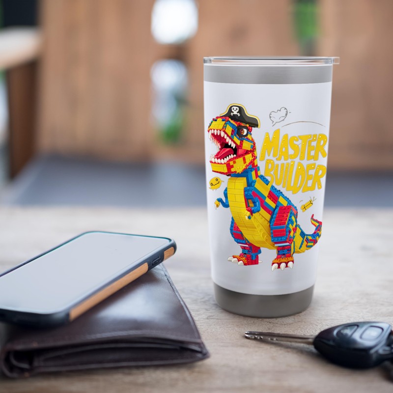 Master Builder T-Rex Dino Pirate Kids Building Blocks Brick Stainless Steel Insulated Tumbler