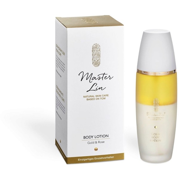 Longing for supple, radiant skin? Then you'll love Master Lin's Gold & Rose Body Lotion! Damask rose rejuvenates and nourishes the skin while high-quality pine needle oil provides its stimulating and activating effects. Pearl extracts and energising fine gold with its antioxidant properties have also been included. The 2-phase body lotion harmonises the function of the skin, ensures penetrating conditioning action and wraps the skin in its delicate scent all day long.