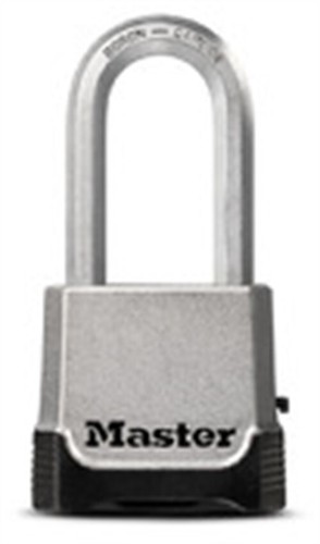 The Master Lock Magnum® No. M176XDLH Solid Body Padlock features a 2in (51mm) wide zinc die-cast body for strength and reliability. The 3/8in (10mm) diameter octagonal shackle is 2in (51mm) long and made of Tough-Cut™ boron-carbide, 50% harder than hardened steel, offering maximum resistance to cutting and sawing. The roller pin cylinder provides maximum pick and pry resistance. The dial cover offers superior weather protection and reinforced body bumper protects against scratches. The lock includes set your own combination and the added convenience of a back up key.Specifications