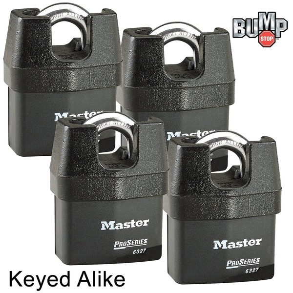 Master Lock Pro Series Padlock - (4) High Security Locks 6327NKA-4 w/ BumpStop Technology