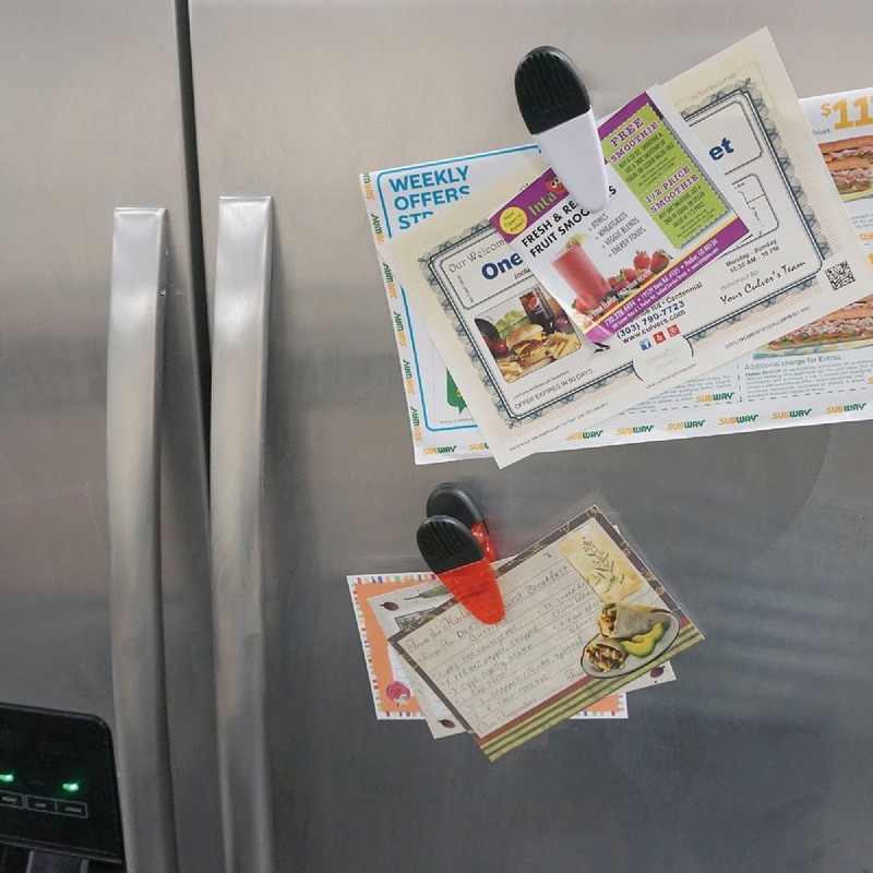 Clips Paper items and holds directly to flat steel surface, Made with powerful neodymium, rare earth magnet imbedded in 3.5 inch long red plastic clip with black rubber coated handles; Includes two magnetic clips