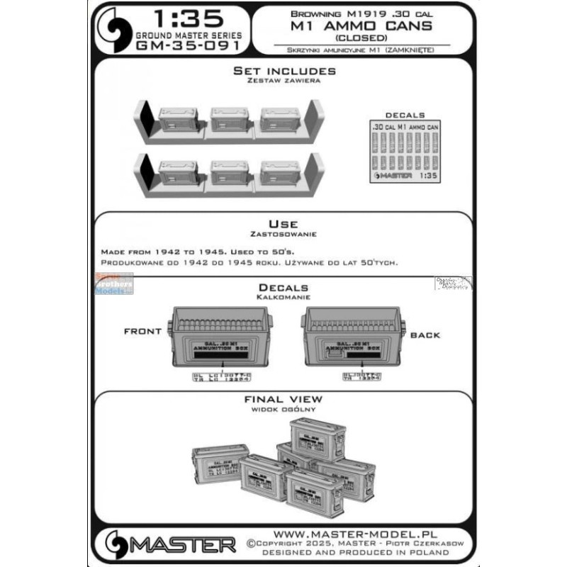 Master Model MASGM35091 1:35 Master Model Browning M1919 .30 cal M1 Ammo Cans Closed