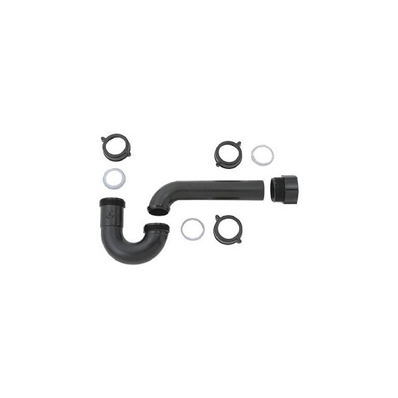 Master Plumber 303-842 Kitchen Wall Drain P Trap has a solvent weld pipe adaptor. Black, plastic construction. 1-1/2" tube slip joint. Includes nuts and washers. Bagged.