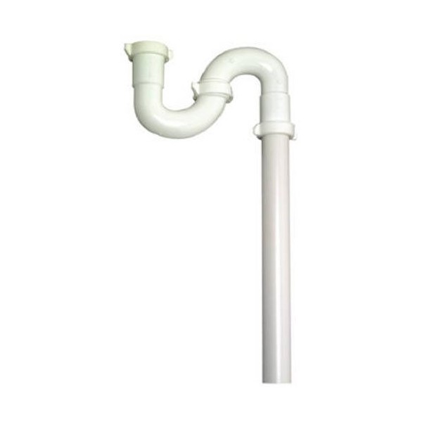 Master Plumber 480-145 Lavatory/Kitchen Floor Drain S Trap is made with white plastic construction. For 1-1/4" or 1-1/2" OD tube slip joint x 1-1/2" OD tube. Includes nuts and washers. Bagged.