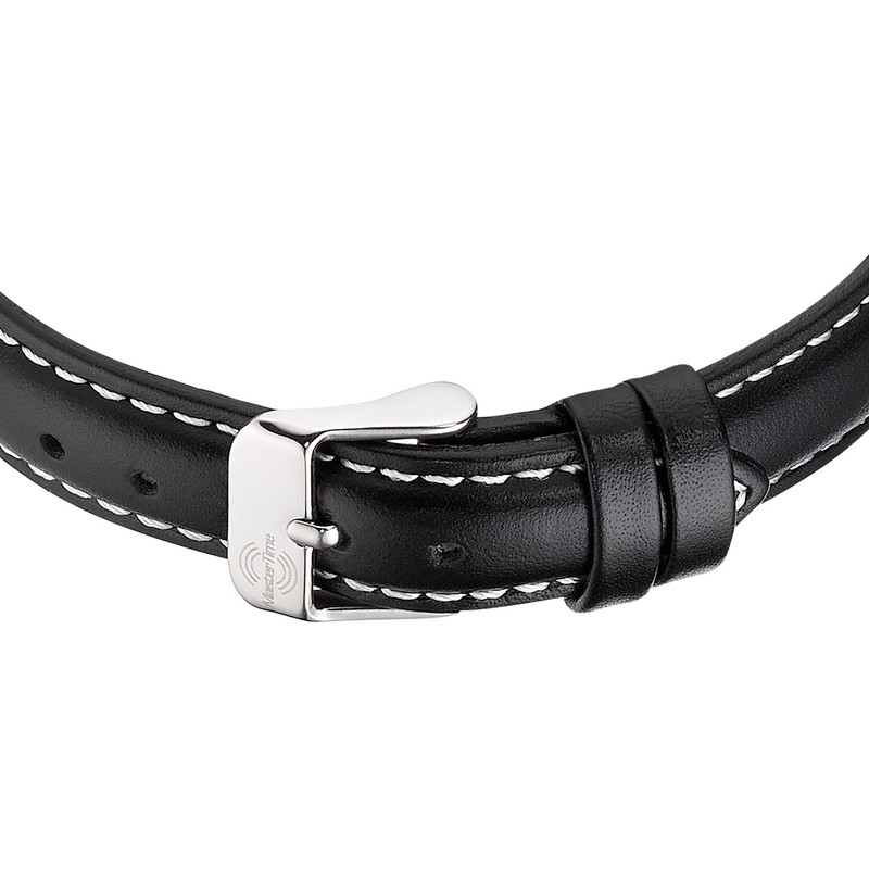 • Analogue radio-controlled watch for women in classic design with black leather strap